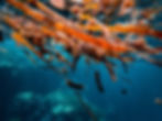 Une autre application possible du biomimétisme dans la conversion d’énergie hydraulique est celle de l’étude du comportement des bancs de poissons pour développer un parc d’hydroliennes ondulantes mieux organisées et positionnées. Ces éoliennes ondulent comme des poissons plutôt que de faire tourner de grandes pales comme une éolienne traditionnelle. Originellement, les bancs de poissons ont une utilité bien particulière : la défense. En effet, les poissons de petite ou moyenne taille se déplacent en bancs pour s’alimenter librement sans se faire attaquer par des prédateurs (l’effet de groupe étant dissuasif et perturbant). Les bancs de poissons sont parfois composés de plusieurs centaines voire de milliers d’individus. Cela leur permet également de limiter de 80% leurs efforts pour se déplacer et de faciliter leur capture de nourritures (essentiellement des planctons ou autres micro-organismes). Lorsque ces poissons sont en banc, leur placement n’est pas aléatoire. Ils se placent en formation “diamant” naturellement, leur permettant d’avoir des propriétés hydrodynamiques très intéressantes. Lorsqu’ils font partie d’un banc, les poissons doivent sans cesse nager (ne jamais s’arrêter) et garder une distance bien précise entre chacun d’entre eux. Ces positionnements bien particuliers leur permettent de réduire grandement les frottements dus à l’eau pour ceux qui les suivent, ce qui économise leur énergie. Des recherches en cours ont mis en évidence l’intérêt de s'inspirer d'une telle disposition pour améliorer le positionnement des hydroliennes ondulantes dans des parcs de plusieurs éléments.